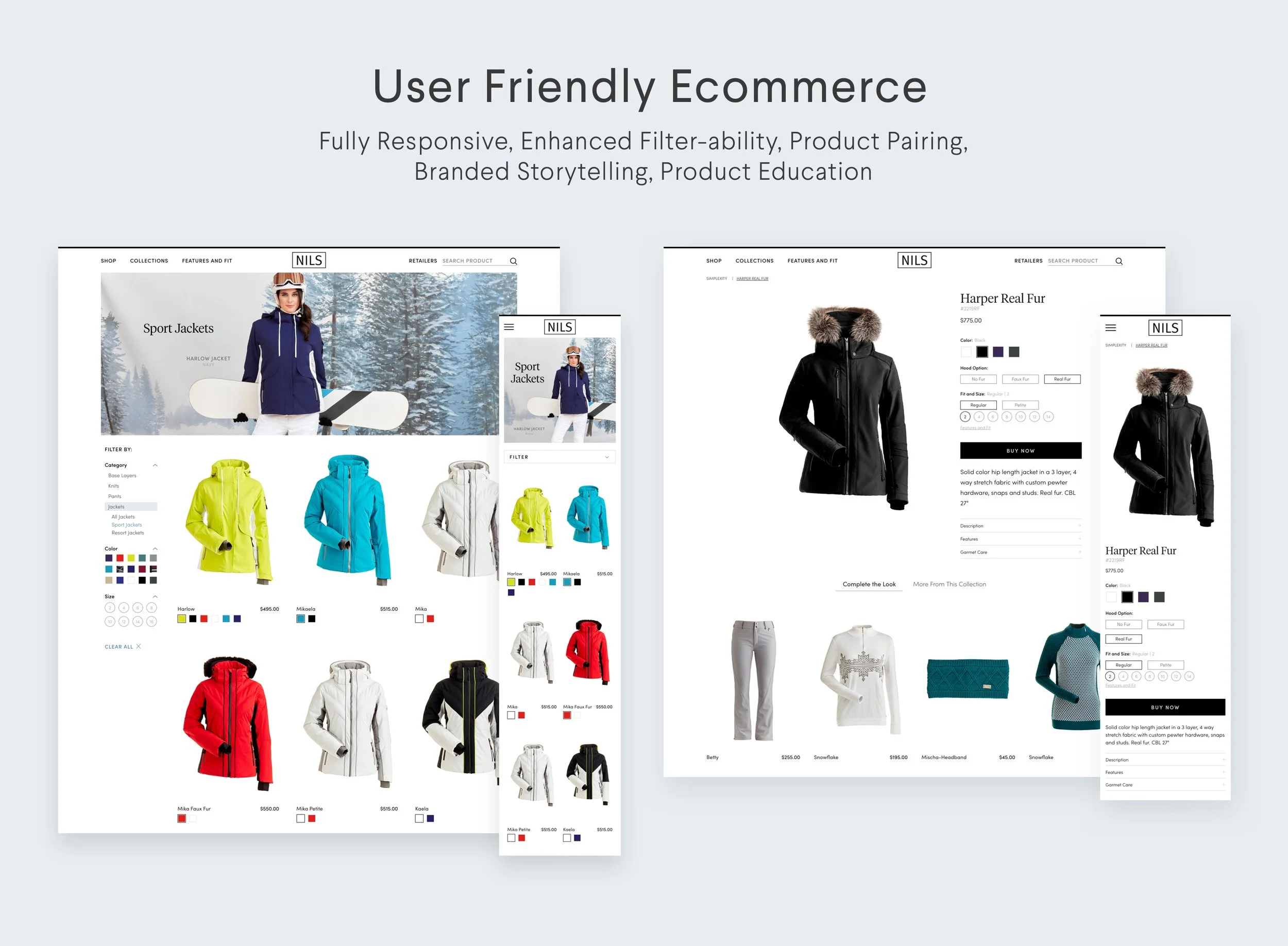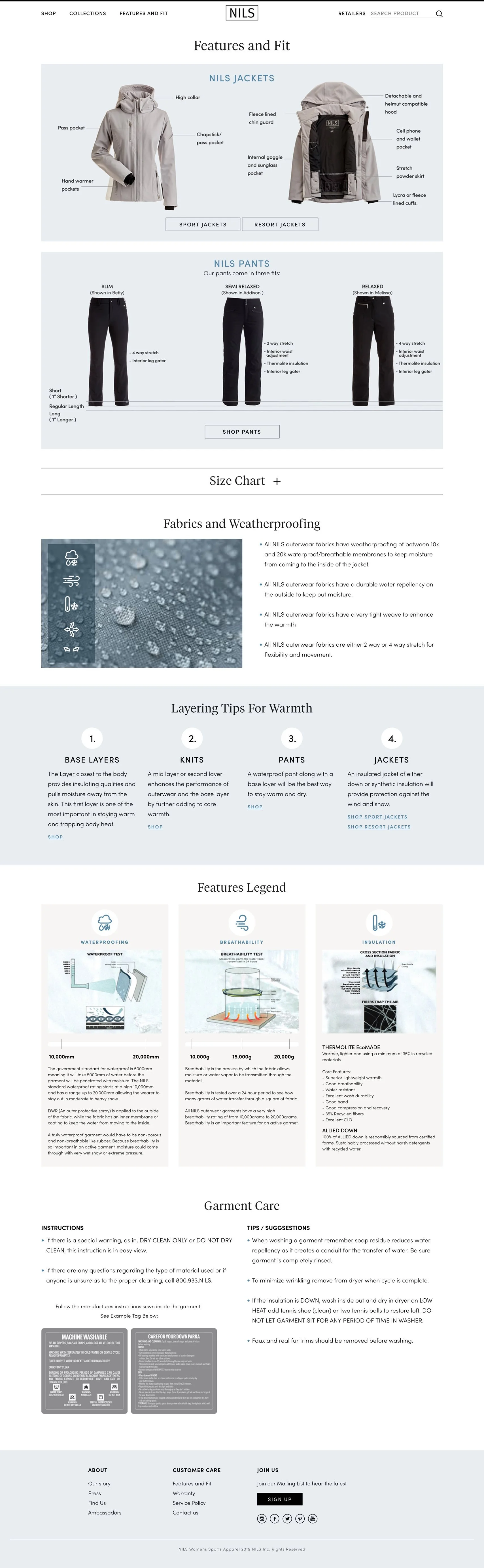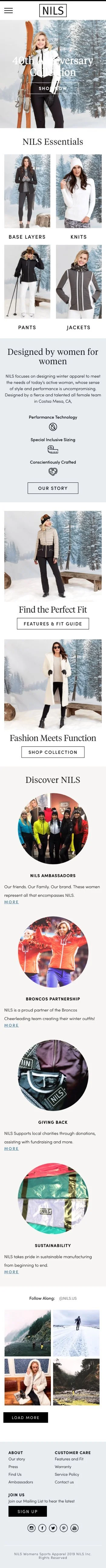 NILS focuses on designing winter apparel to meet the needs of today’s active woman, whose sense of style and performance is uncompromising. All products are designed by a fierce and talented all female team in Costa Mesa, CA. When relaunching their site we wanted to keep a feminine, yet stylishly technical feel across their shop.